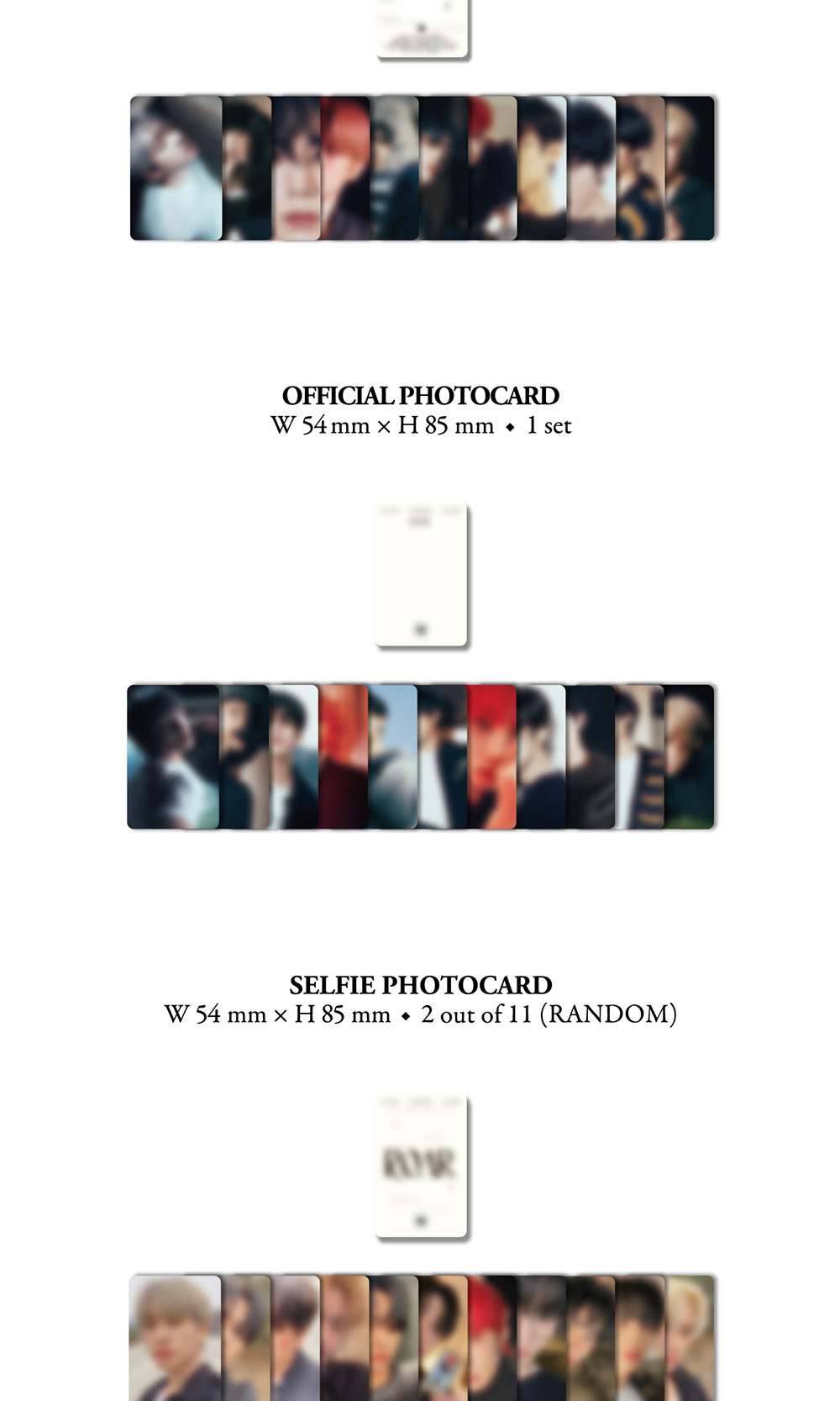 - OFFICIAL PHOTOCARD : W 54mm X H85mm / 11종(1SET) 삽입